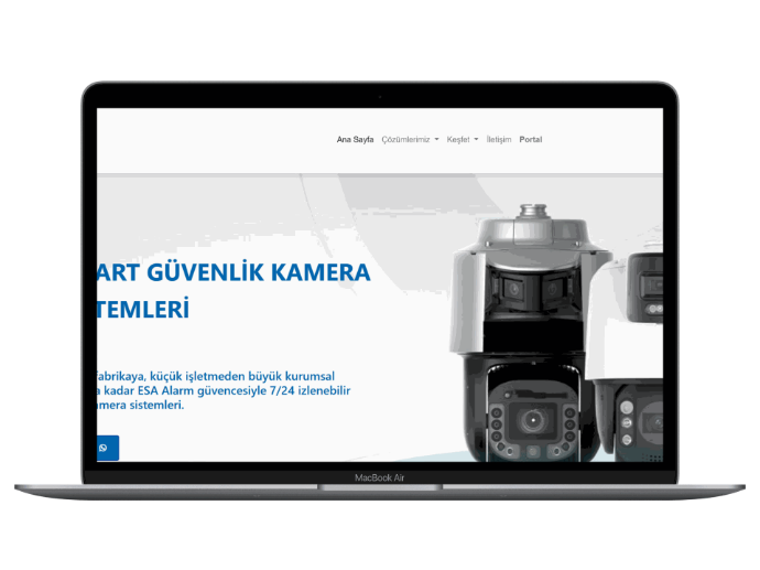 Smart Güvenlik Kamera'nın profesyonelliğini yansıtan, kullanıcı dostu ve mobil uyumlu bir web sitesi tasarlandı. -
